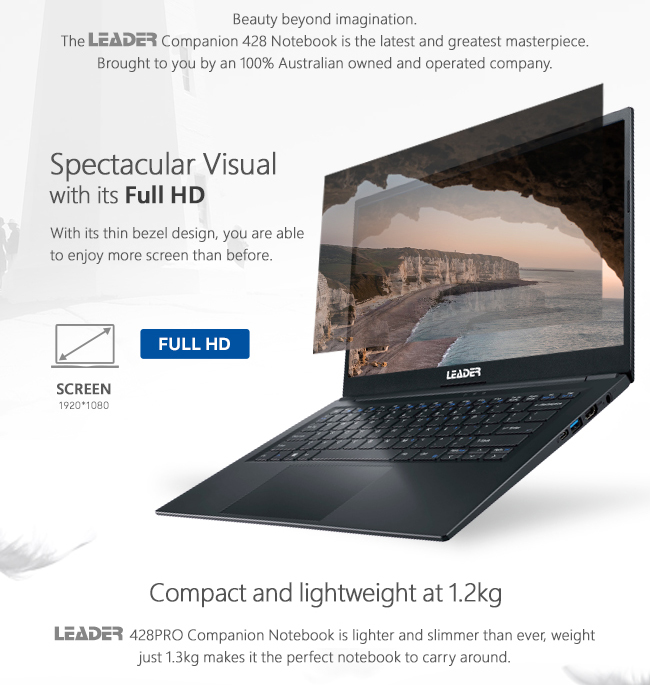 Leader Ultraslim Companion 428, 14″ Full HD, intel i5-10210U, 8G, 240G SSD, Windows 10 Home, WiFI 6, 2 year onsite warranty, black, 180° Hinge Design